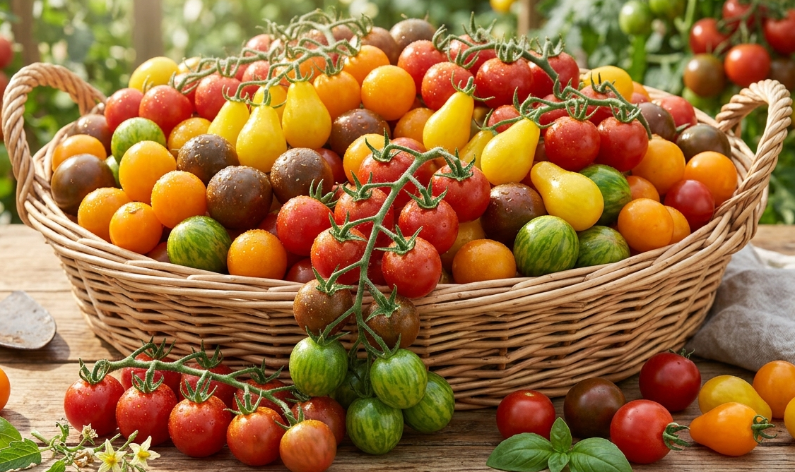 Cherry tomatoes are small, bite-sized tomatoes typically 1 to 2 inches in diameter. They are sweeter and less acidic than full-sized tomatoes, with a satisfying pop when you bite into them.